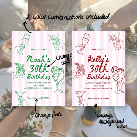 Cocktail Birthday Party Invitation | Printable Canva Template