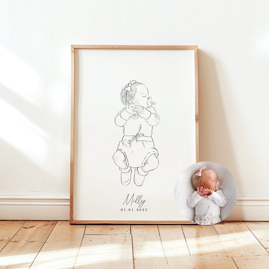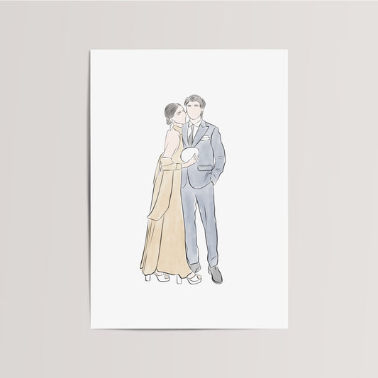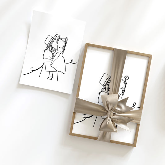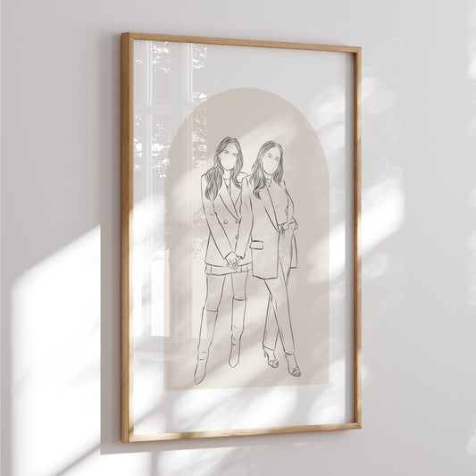 Ik maak lijnillustraties waarbij ik jouw eigen persoonlijke foto gebruik. Dit gepersonaliseerde portret heeft een boho-look waarbij je uit verschillende soorten achtergrondkleuren kunt kiezen. De op maat gemaakte lijntekeningenillustratie is een minimalistische digitale print die een prachtige aanvulling is op elk gezinshuis.