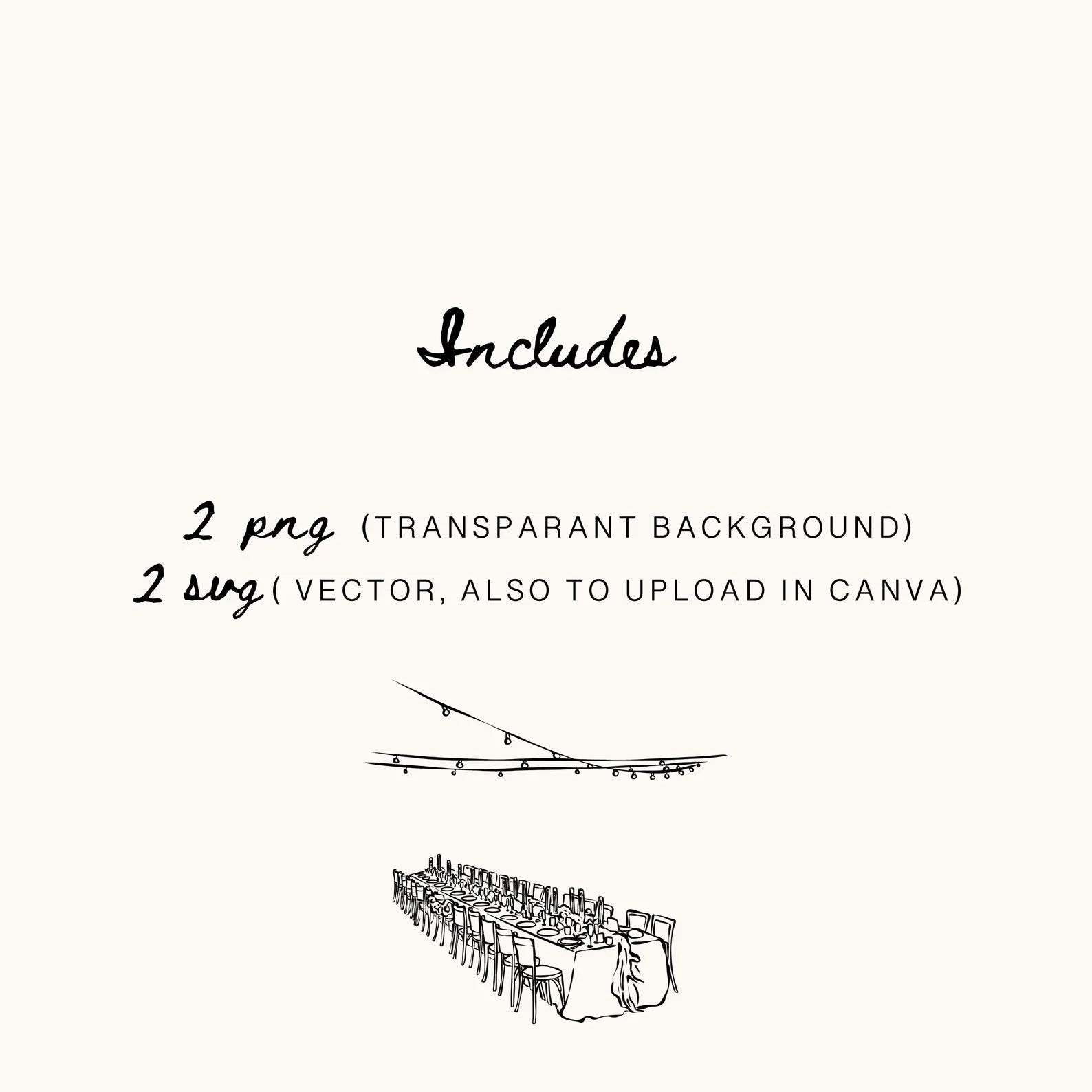 Italian Wedding Reception Line Art Illustration (PNG, SVG)